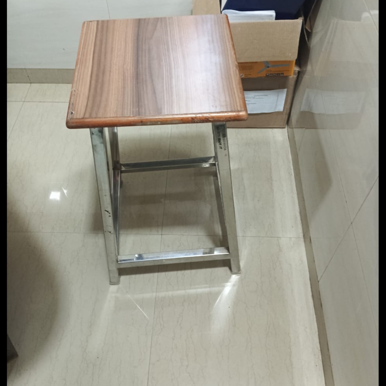 SS STOOL WITH WOODEN TOP SIZE AS PER YOUR REQUIREMENT.